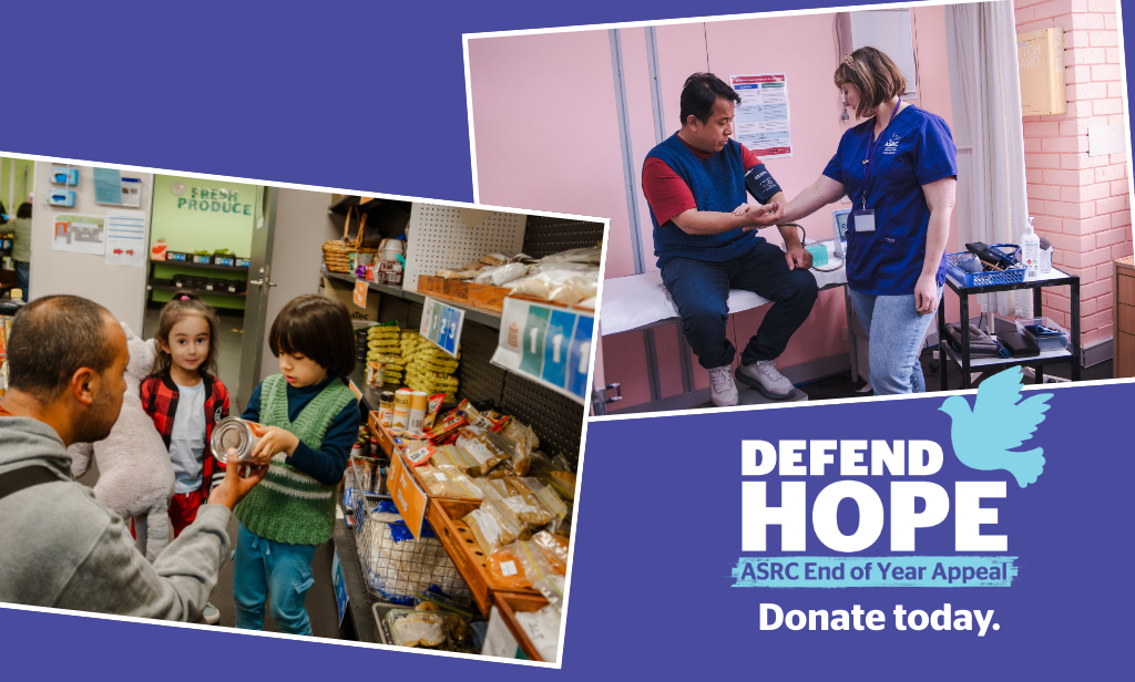 Two of ASRC’s essential services that help make this possible are our Health Program and our Foodbank. They are lifelines for people who arrive with nothing but determination and hope that they might finally find a break and some breathing space.